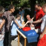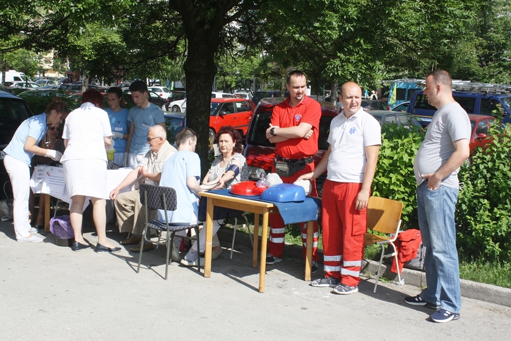 Plato ispred Ambulante „Sjenjak“ bio je sestrinska baza za građane gdje su timovi medicinskih sestara i tehničara iz Službe opšte/porodične medicine i Službe hitne medicinske pomoći,građanima praktičnim prikazom objašnjavali osnovne mjere oživljavanja te mjerili šećer u krvi i krvni pritisak.