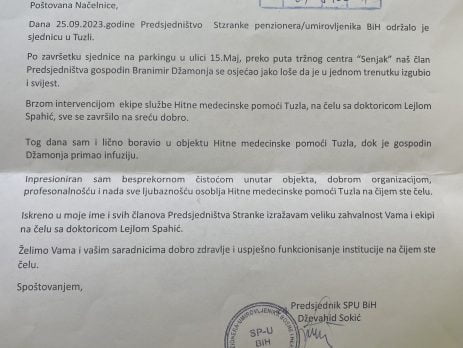 POHVALA PROFESIONALIZMA I RADA SLUŽBE HITNE MEDICINSKE POMOĆI