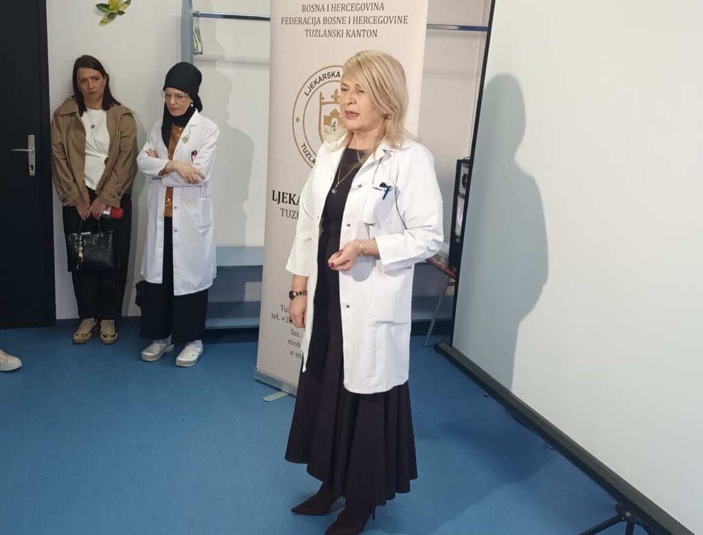 Posebna mi je čast što je to u Domu zdravlja Tuzla koji na ovaj način pokazuje da ima kvalitete jedne respektabilne zdravstvene ustanove. Vrhunski i stručni predavači će kako je naglasila biti će iz Doma zdravlja Tuzla, UKC-a Tuzla i iz privatnog sektora. Ljekarska komora će uvijek podržavati unapređenja i osnaživanja edukacijskog karaktera a sve sa ciljem što boljih rezultata i kvaliteta usluga zdravstvenih ustanova, kazala je predsjednica Ljekarske komore TK-a, posebno naglasivši kako su uporedo krenule dvije škole , jedna u Domu zdravlja a druga na UKC-u Tuzla i to izuzetno važna škola, color dopler krvnih sudova.